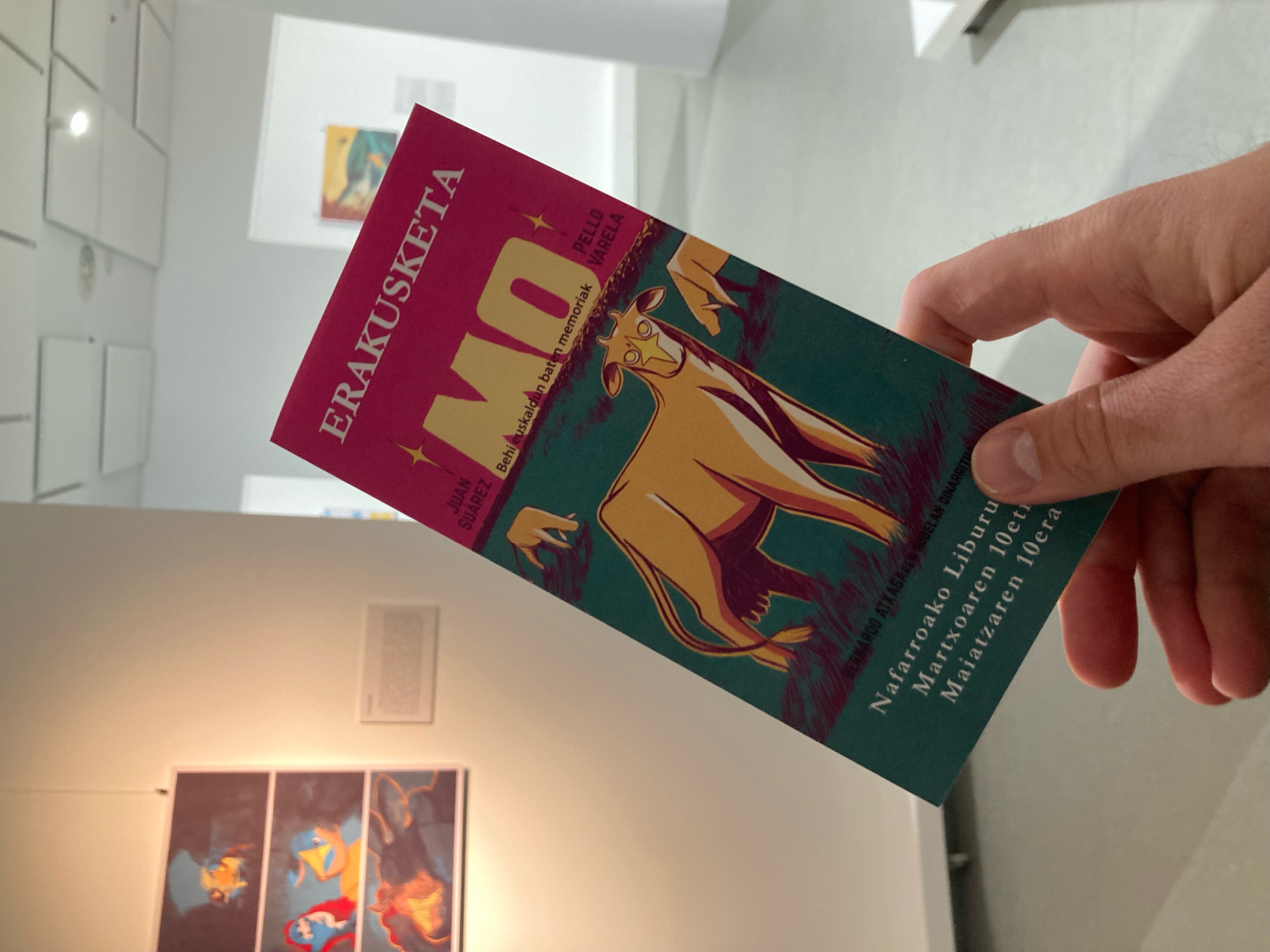 Hasta el al 10 de mayo se puede ver en la Sala de Exposiciones de la Biblioteca de Navarra "MO. Behi euskaldun baten memoriak", una exposición y proyecto pedagógico en euskera y orientado al público juvenil, basado en la novela de Bernardo Atxaga "Memorias de una vaca".